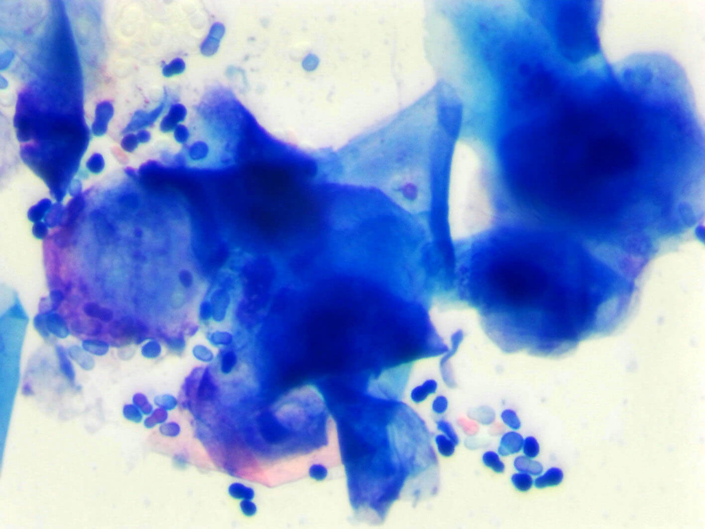 identifikovať baktérie, kvasinky a zápalové bunky,